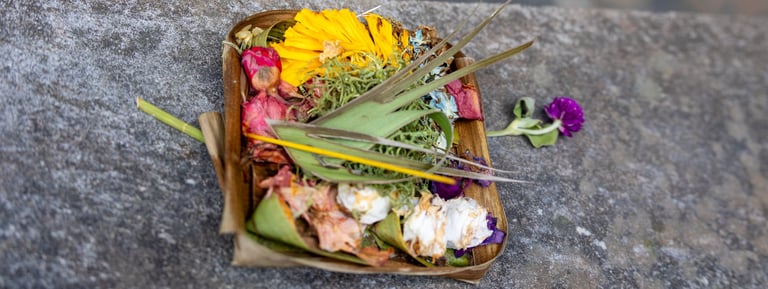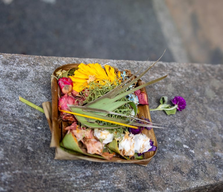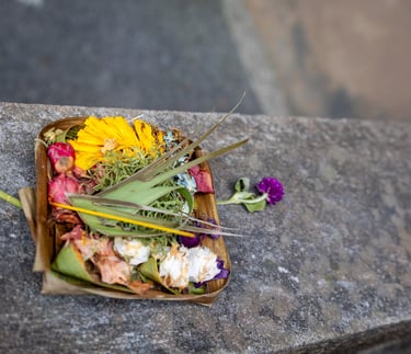 You’ll see small palm-leaf baskets everywhere. These are Canang Sari—daily offerings symbolizing gratitude and balance. Be mindful of where you step.